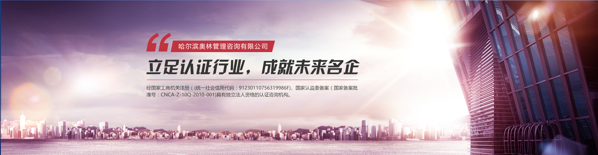 哈爾濱奧林管理咨詢有限公司(原新時(shí)代質(zhì)量認(rèn)證咨詢有限公司)成立于2000年9月,簡稱HOL,HOL是經(jīng)國家工商機(jī)關(guān)注冊(統(tǒng)一社會(huì)信用代碼:91230110756319986F)、國家認(rèn)監(jiān)委備案(國家備案批準(zhǔn)號:CNCA-Z-10Q-2010-001)具有獨(dú)立法人資格...